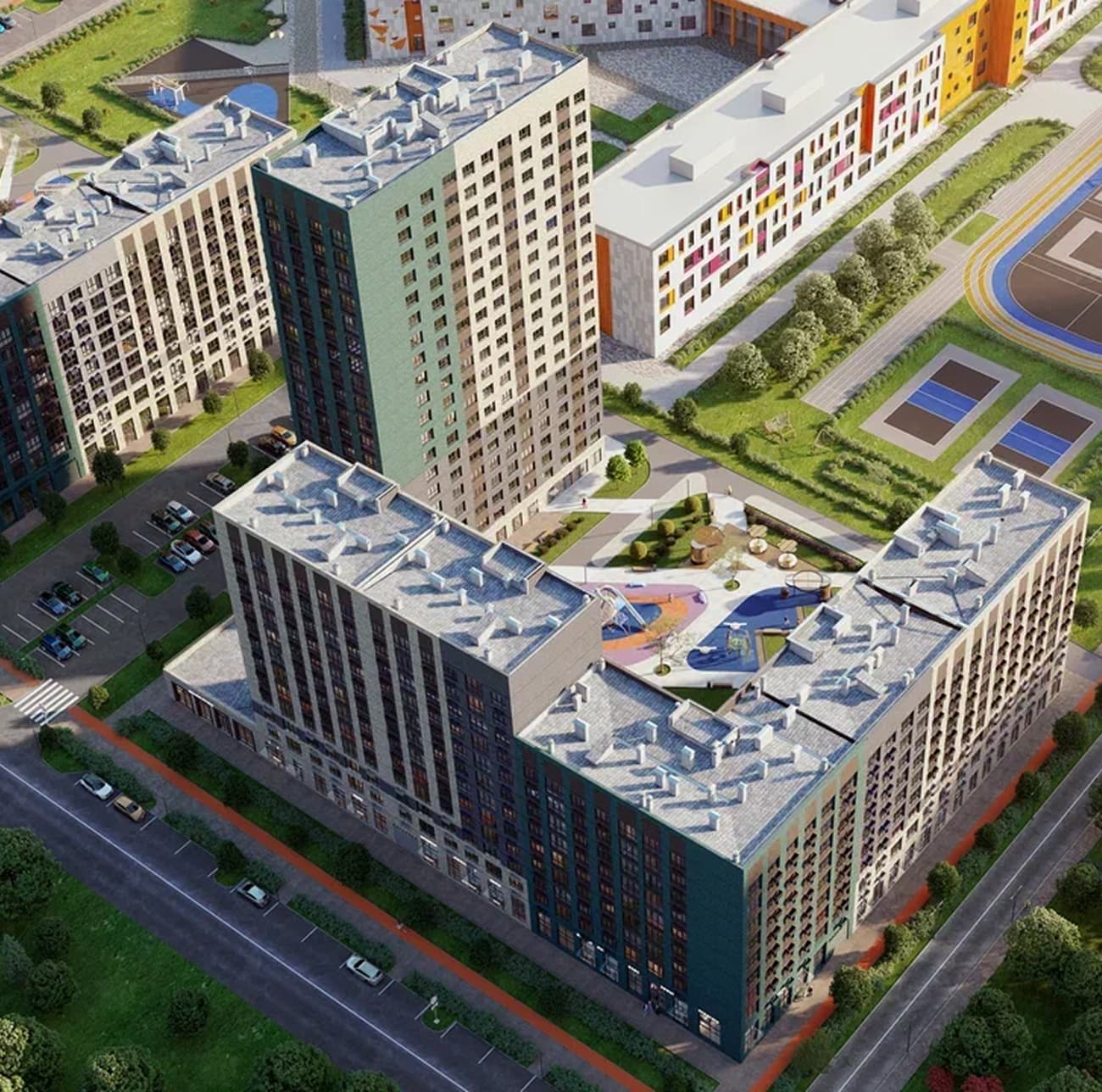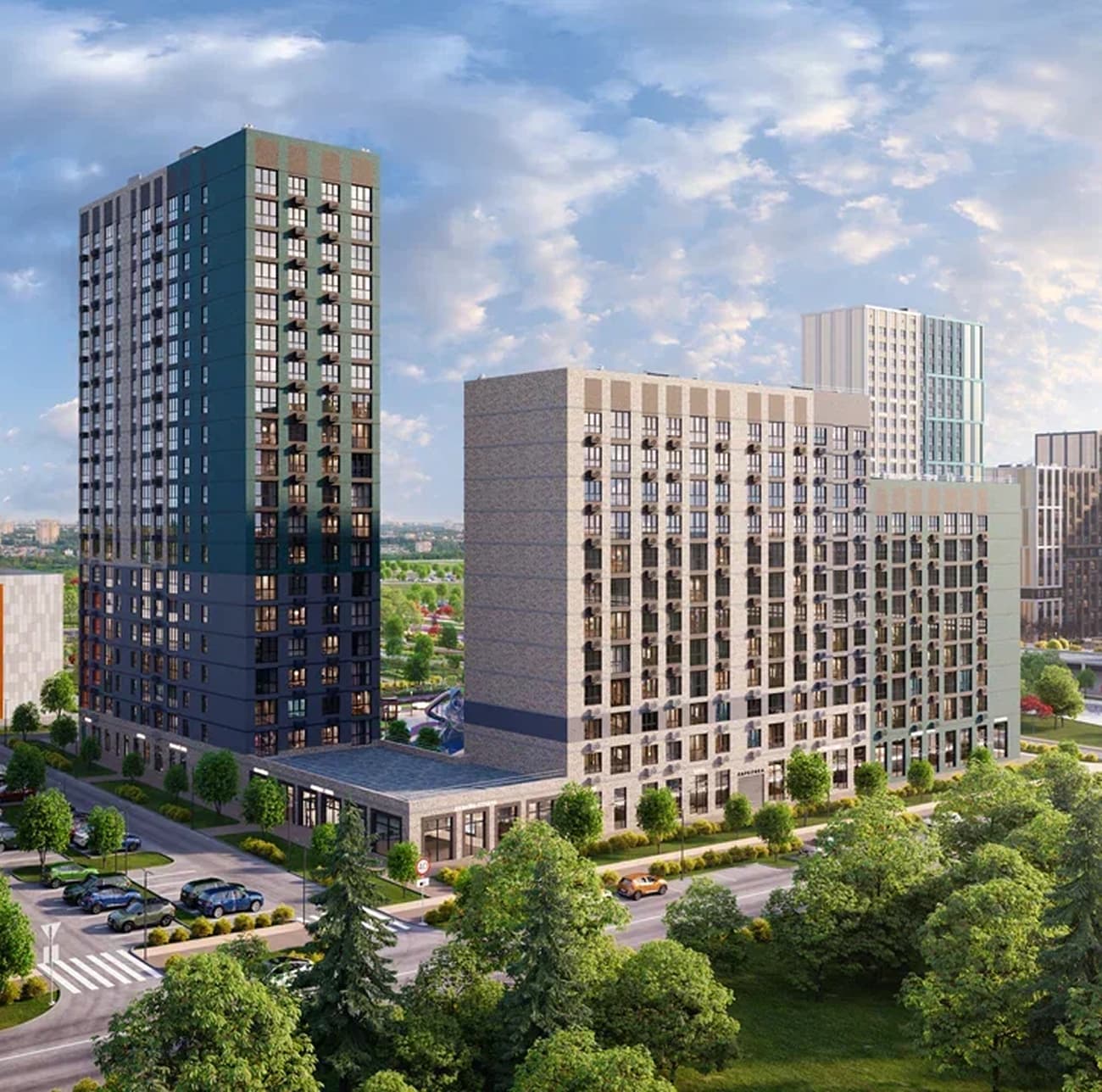 Новый жилой комплекс, где продуман каждый элемент для вашего комфорта. Ваше личное пространство — с зонами отдыха и спорта. Двор с игровыми площадками, детским садом и современной школой у дома. Оставляйте машину в подземном паркинге, посещайте любимые кофейни и магазины на первых этажах, выходите на прогулку по большому благоустроенному бульвару с дизайнерским ландшафтом. Погружайтесь в полный комфорт в своей просторной квартире с видом на панораму квартала.