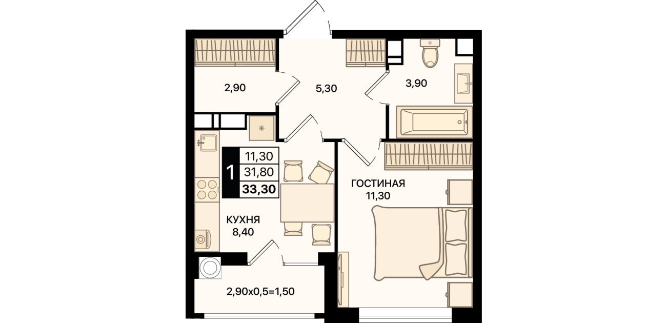 33,30 м²