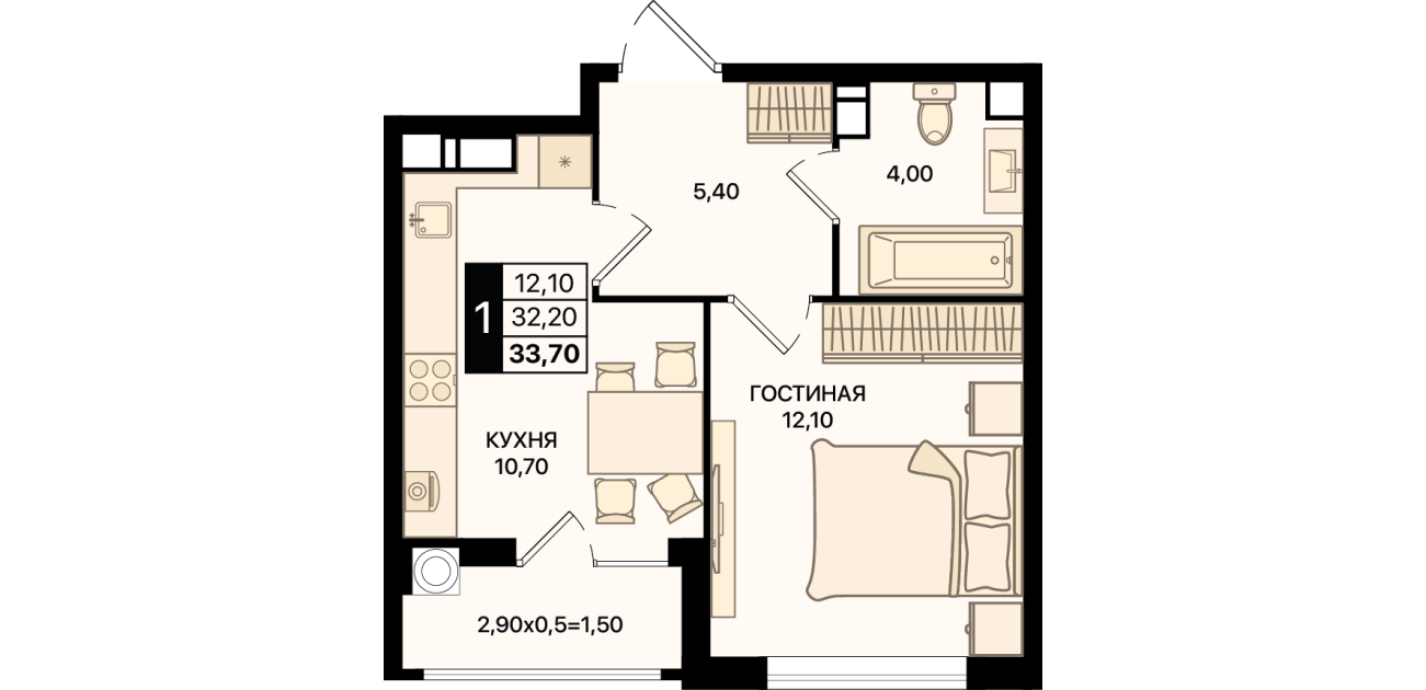33,70 м²