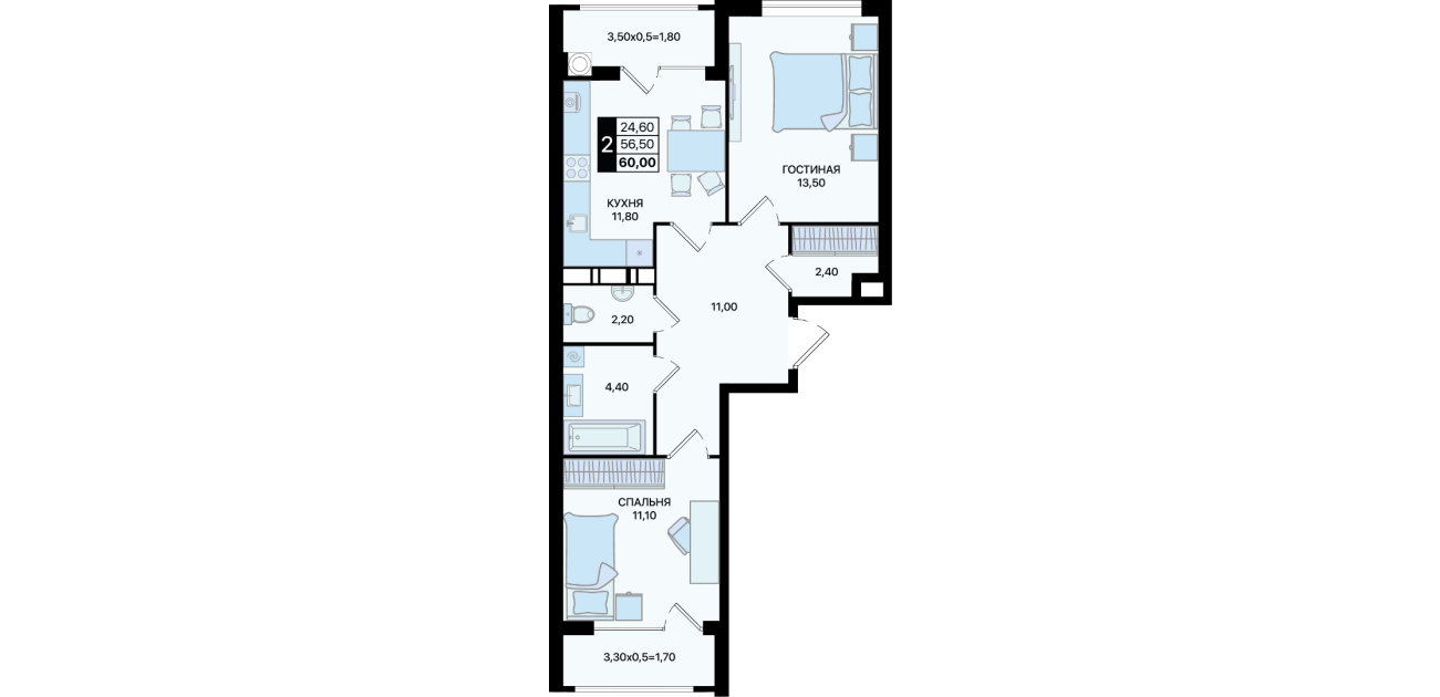 60,00 м²